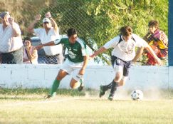 | Presionado. Carlos Jacobi, con la pelota, intenta despejar el peligro lejos de su arco mientras aguanta la presión de Bolatti |
